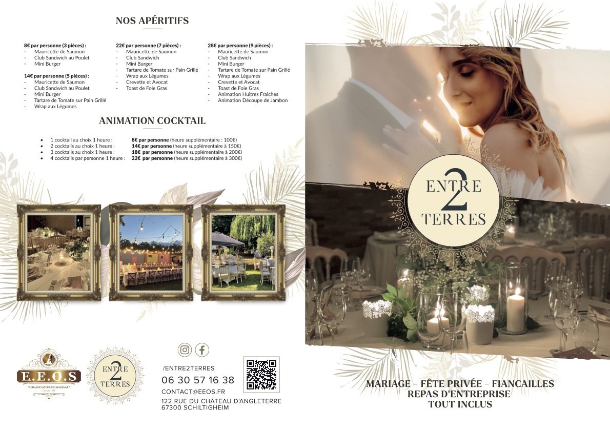Chez Entre2terres La Villa, nous proposons des forfaits par personne sur mesure pour votre mariage ou événement privé ou professionnel à Schiltigheim, Strasbourg, en Alsace, adaptés à votre budget et à vos envies.